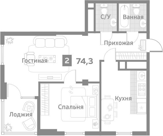 74.3 м2